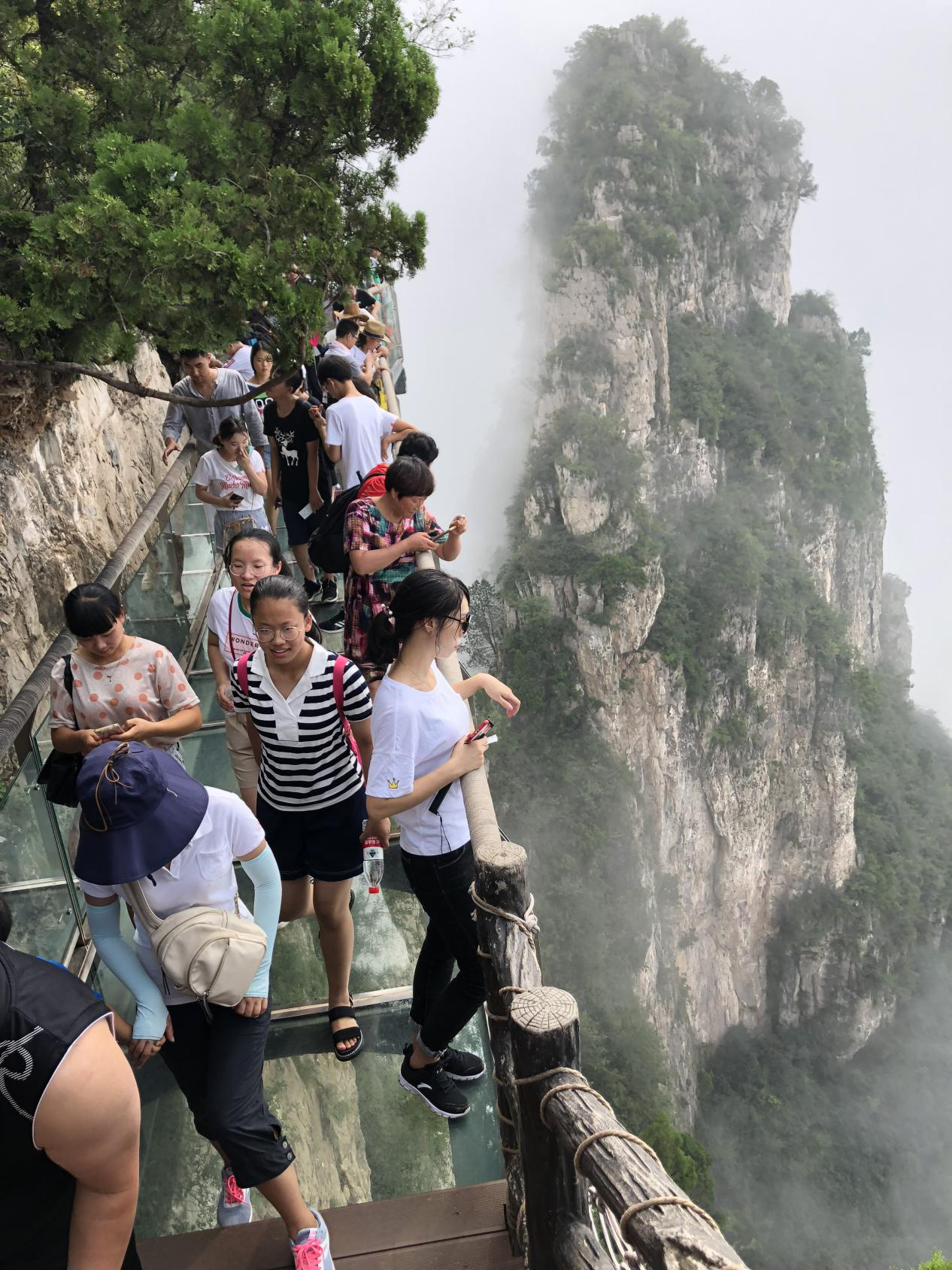 根據(jù)行程安排,大家先后游覽了“華夏第一秀水”小寨溝、“華夏第一奇峽”紅石峽,以“三步一泉,五步一瀑,十步一潭”而著稱的老潭溝及野生獼猴保護區(qū)獼猴谷,第二天大家去感受萬丈凌空的驚險、欣賞群峰林立的美景--云臺山玻璃棧道,并登上千階的云梯棧道——海拔1308米的茱萸峰頂,途中坐車經(jīng)過了14個疊彩洞,當天早上霧氣彌漫,體驗了前所未有的云中乘車。迷人的自然風(fēng)光讓大家流連忘返。
