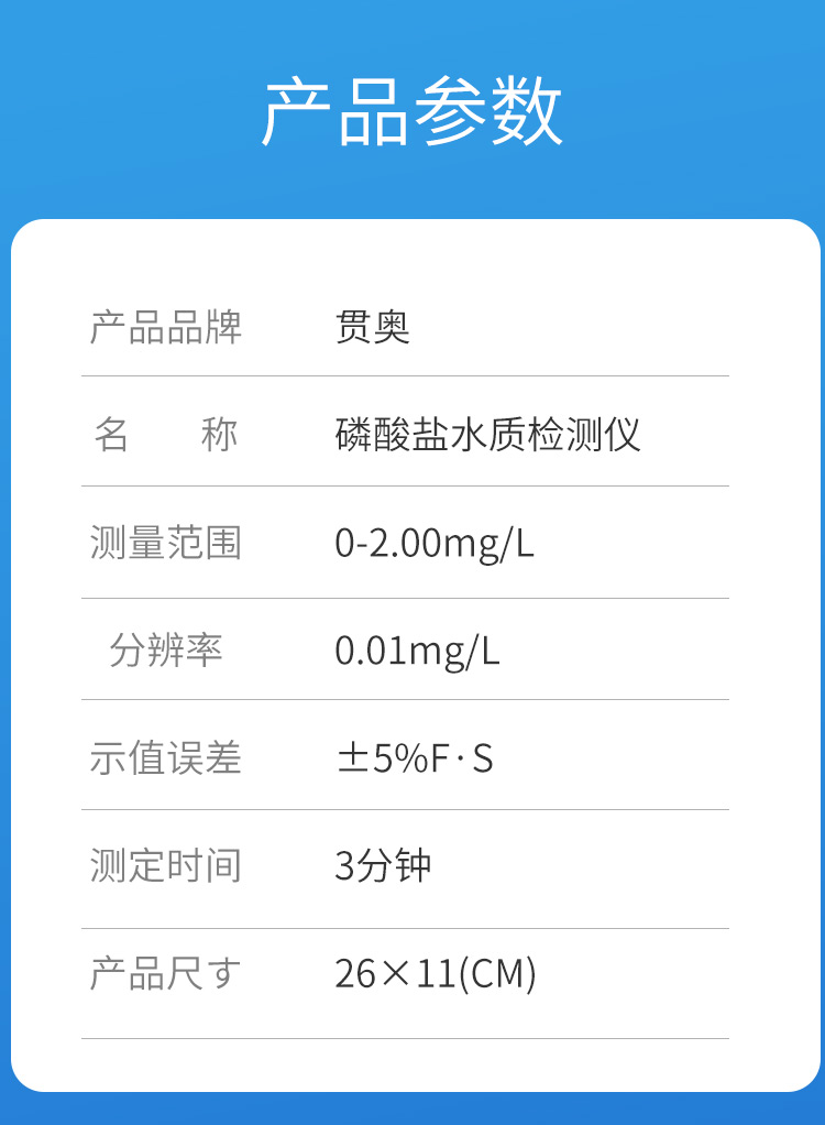 磷酸鹽水質(zhì)檢測(cè)儀器參數(shù)配置: