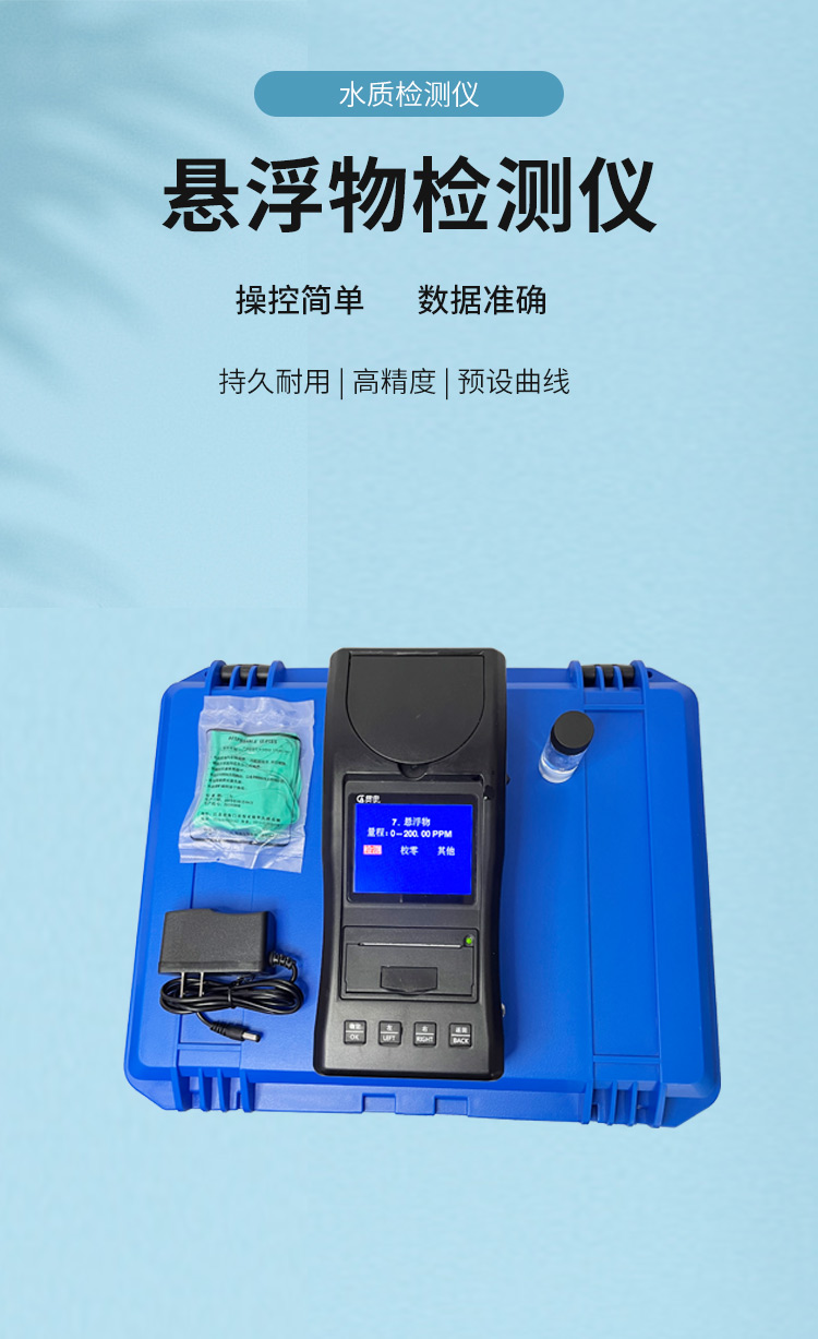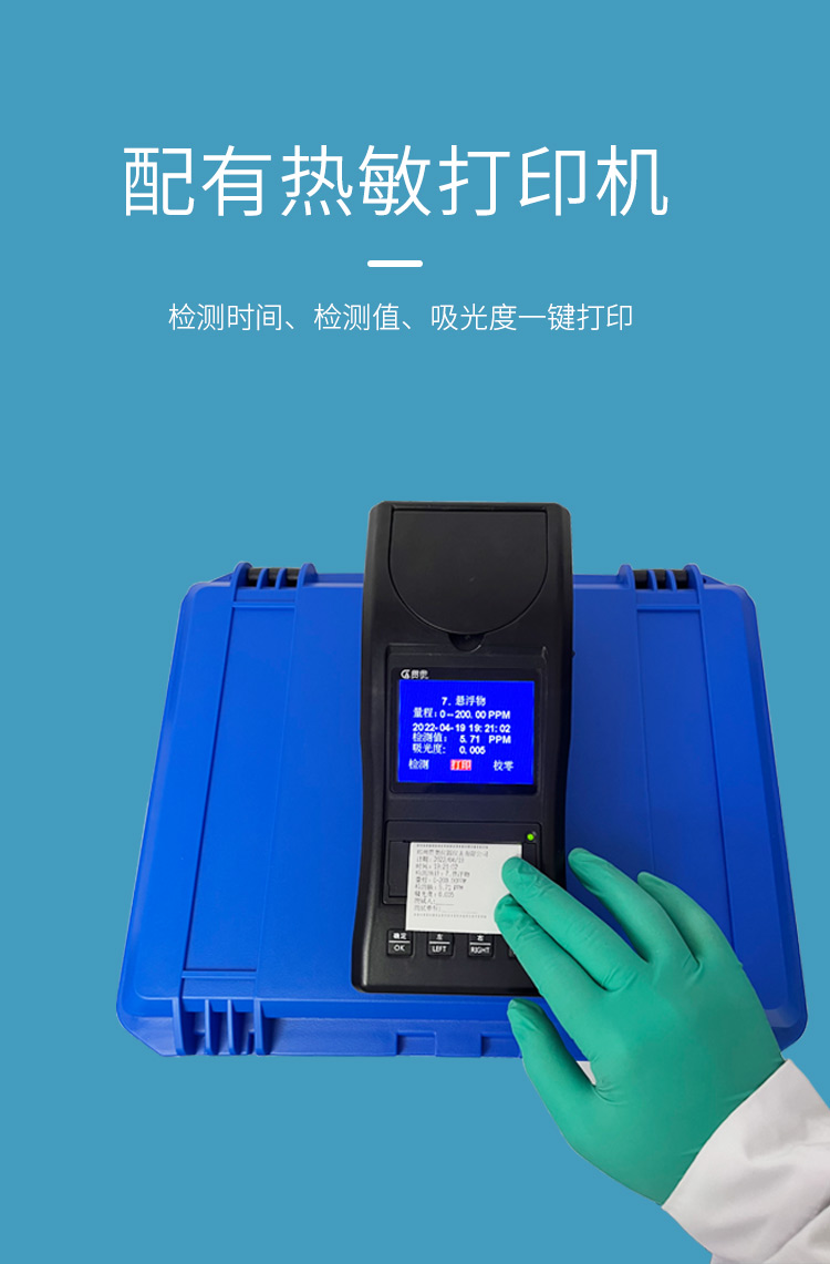 懸浮物水質檢測儀可快速準確測定地表水、地下水、城市污水及工業(yè)廢水中懸浮物指標,濃度直讀;可廣泛用于水廠、食品、化工、冶金、環(huán)保及制藥行業(yè)等部門。儀器是由單個的固定波長固定用途的分光光度計糅合而成的,采用分光光度法原理對各參數(shù)進行測量,在儀器中建立不同參數(shù)的濃度顯色程度與吸光度的線性曲線,儀器通過對顏色的辨別,得出被測水樣的濃度。本儀器采用全中文菜單,操作簡單易懂,使用方便快速測量準確度高。